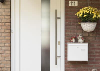 Voordeuren kunnen we leveren in bijna alle soorten eventueel met elektrische ontsluiting (geen dikke knop aan de binnenkant) die zo nodig gekoppeld wordt aan het internet systeem van het huis.
